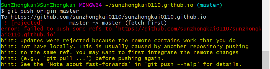问题:如果GitHub上repository比本地代码库的代码新,则会出现问题