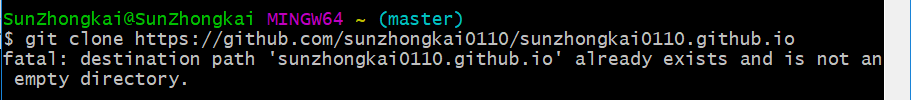 问题1:当该路径下已经存在与repository同名的文件夹,则会出现如下错误: